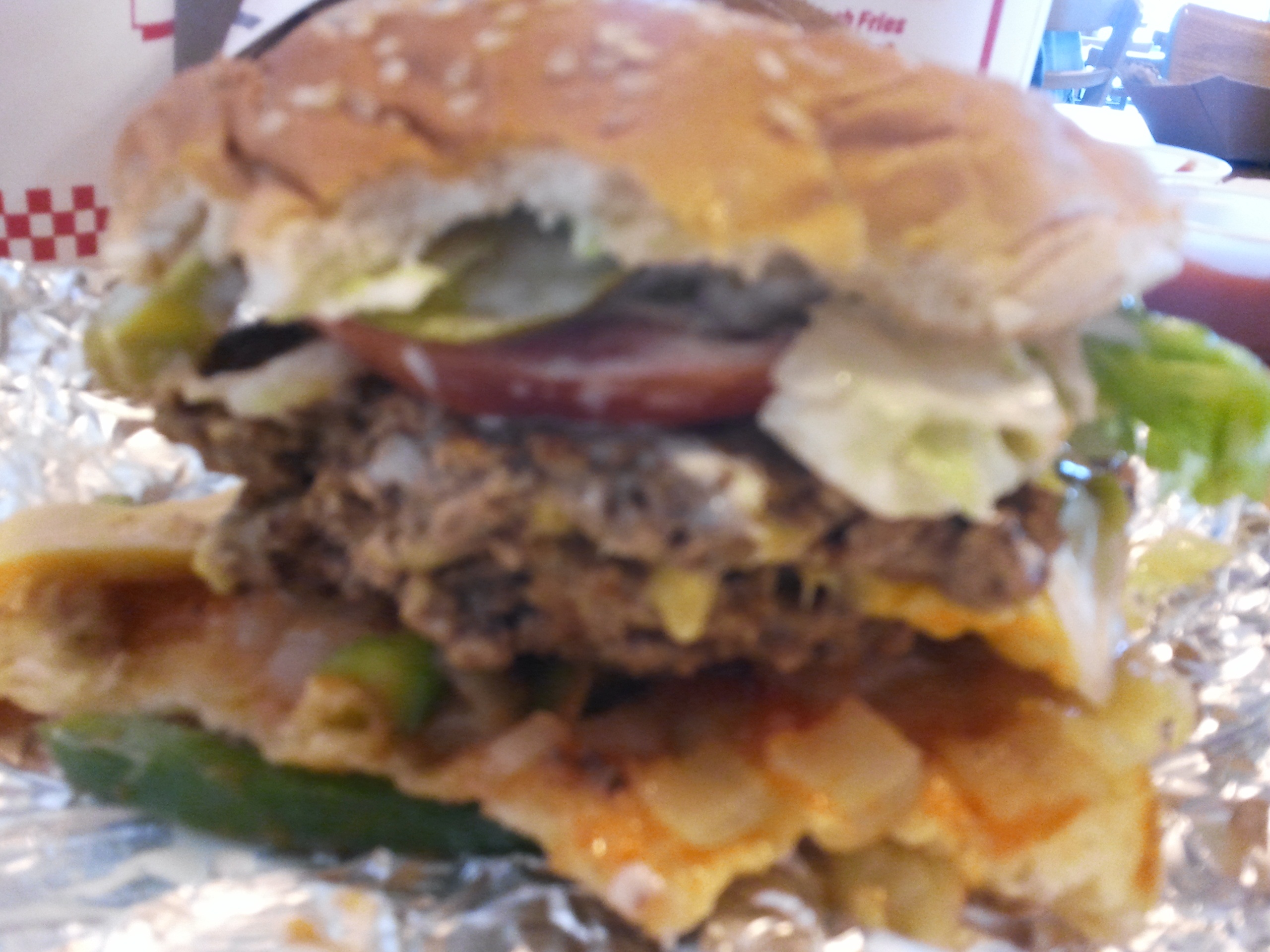 My almost 12 year old son got his usual plain Cheeseburger, our kids are very plain, fortunately my daughter was at a friends house and chose not to come with us as she really does not like five guys, or red meat, well, really any meat. My husband and I proceeded to get our cheeseburgers loaded with as much stuff as we thought we could put on them while still being able to hold and wrap our mouths around them, this can be a challenge for the small lady I am, all 4’11” of me. I amaze people everyday how much food I can pack away, thus, the reason I have to be so regimented with my exercise!