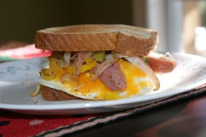 5 thoughts on “Egg, cheese, smoked sausage and veggie sandwich!