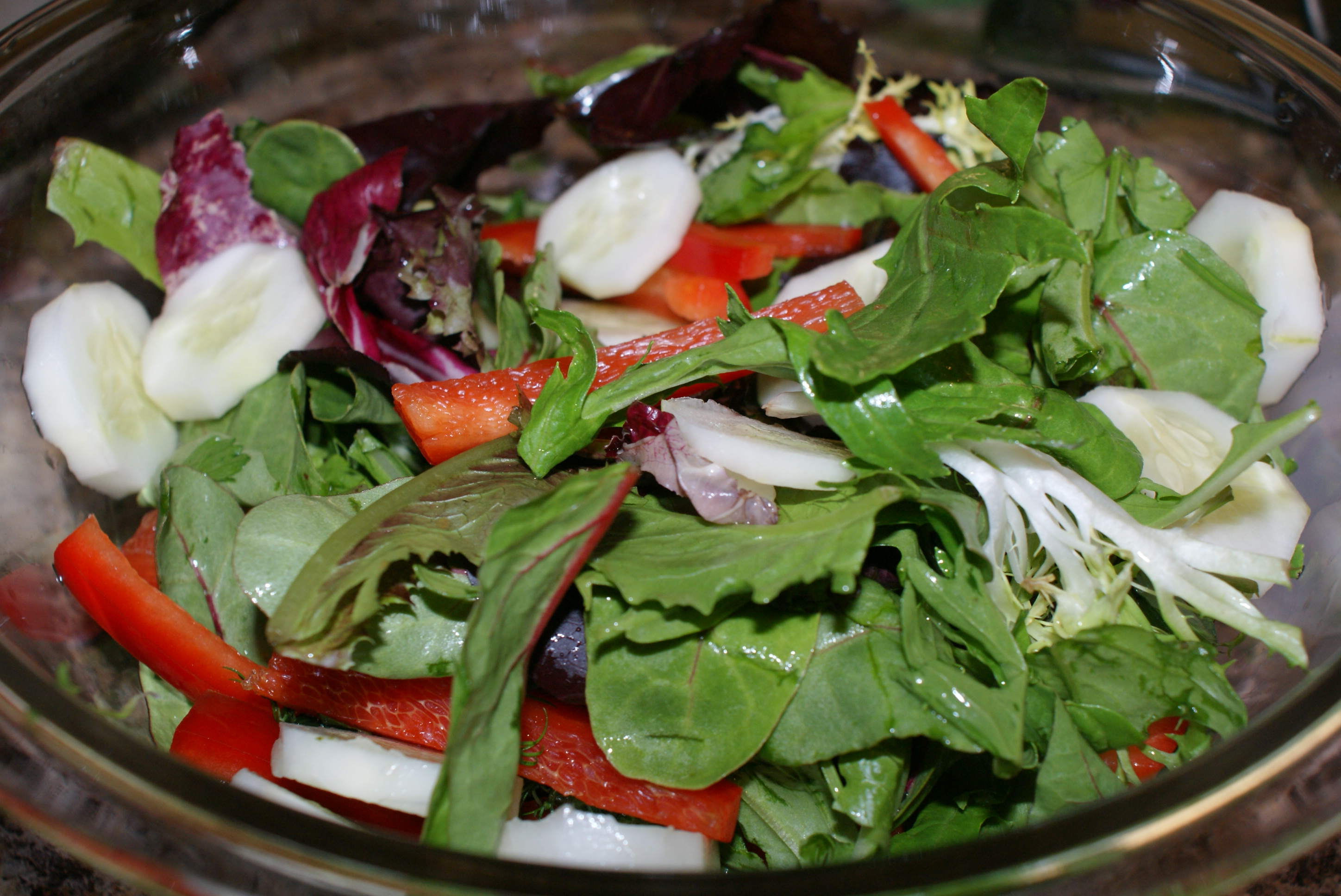 For the Balsamic vinagarett I used 1/2 cup Olive oil, 3/4 cup balsamic vinagar and shook well, very easy, huh! When I made the dipping sauce I put part of that dressing in a small bowl, added a clove of minced garlic, black pepper to taste and about 1 heaping tbsp on parmesan cheese and mixed together!
