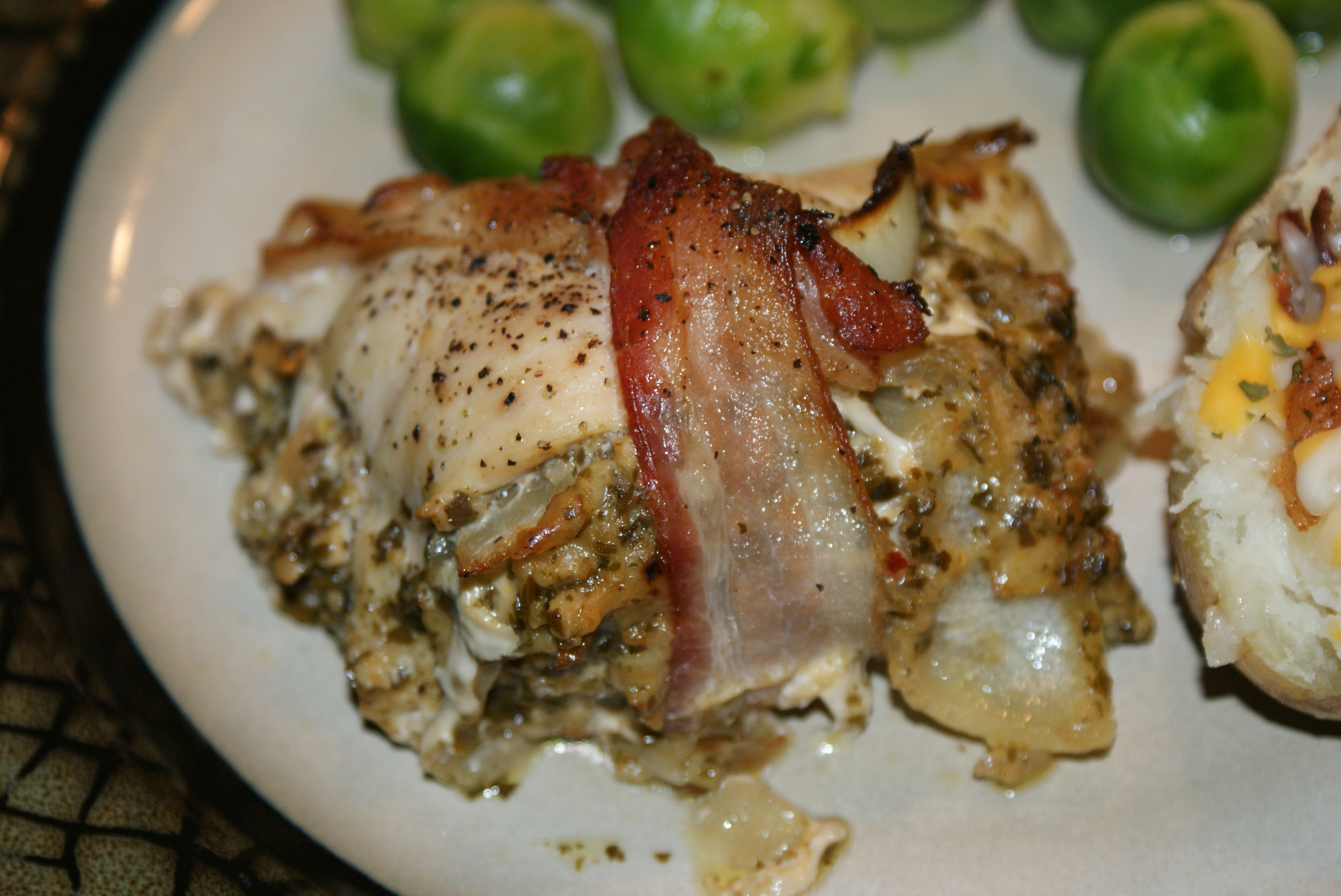 Pingback: Pesto, cheese & onion stuffed chicken wrapped in bacon and twice baked potatos | Chaos and Cookies