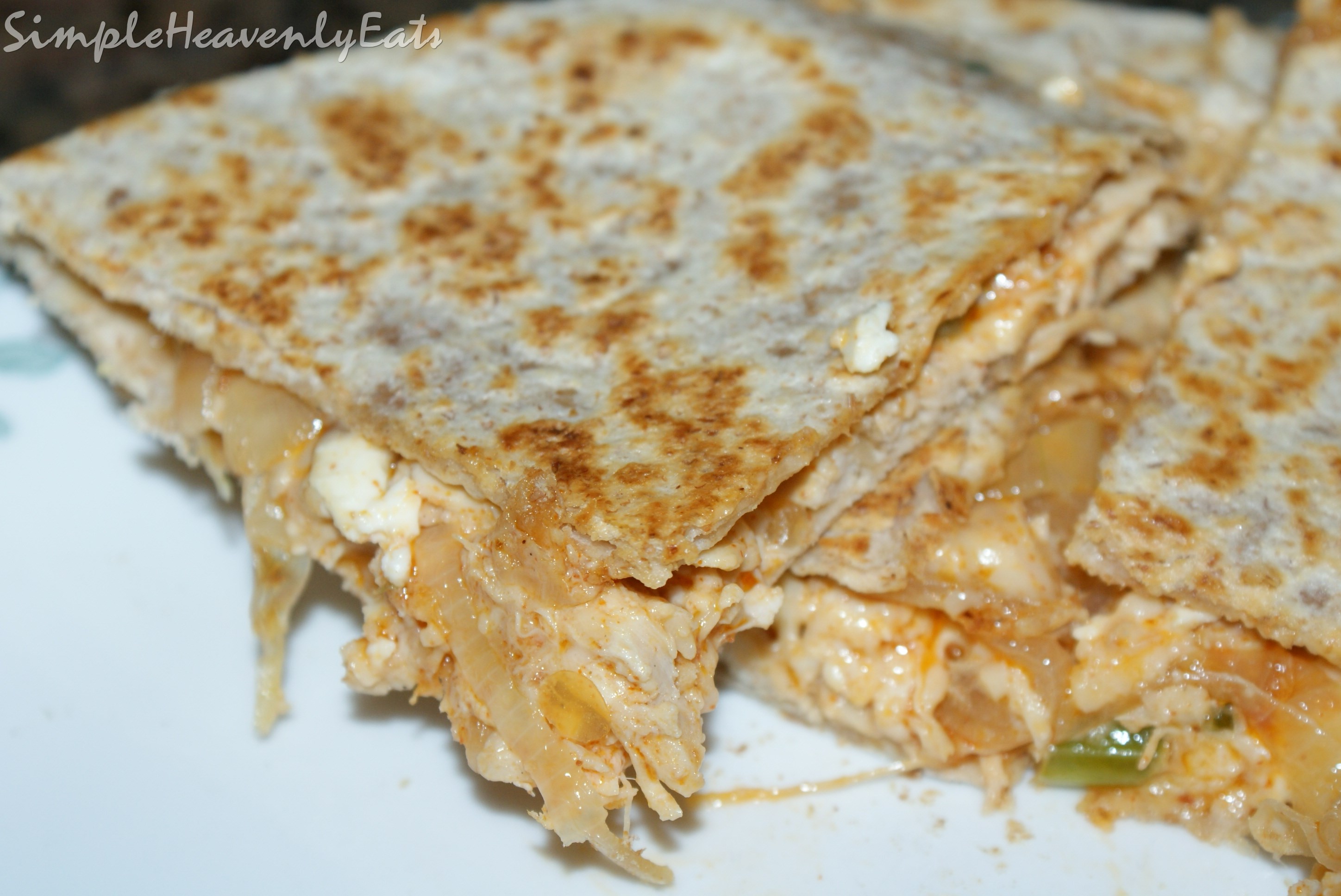 SONY DSCTonight I made the best quesadillas ever! I wanted something simple because to be honest this week has been busy and I’m really tired on top of having a pinched nerve or something. Neck and back pain are no fun so I wanted easy, quick and good! I’m a little out of sorts this week and really off schedule, I think part of it is the catch up from the kids being on vacation last week, Easter business and yesterday my son had a minor surgery and I wonder why I’m tired! I’m sure many many parents can relate! These buffalo chicken quesadillas I made are a must try, I for sure know I will be making them again very soon, I could hear my husband purring across the table, I swear he purrs when he truly enjoys a meal! haha. Here is the recipe!