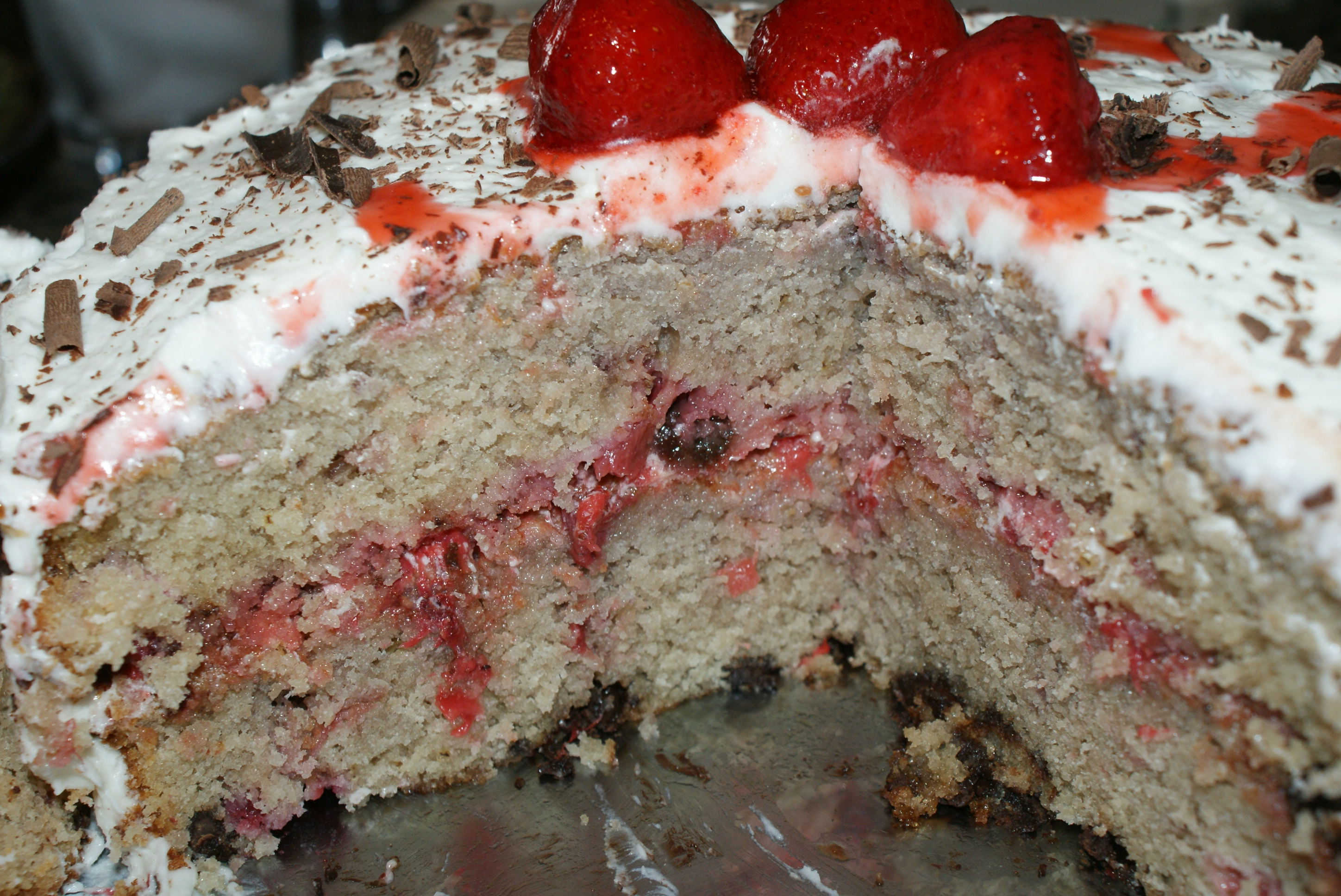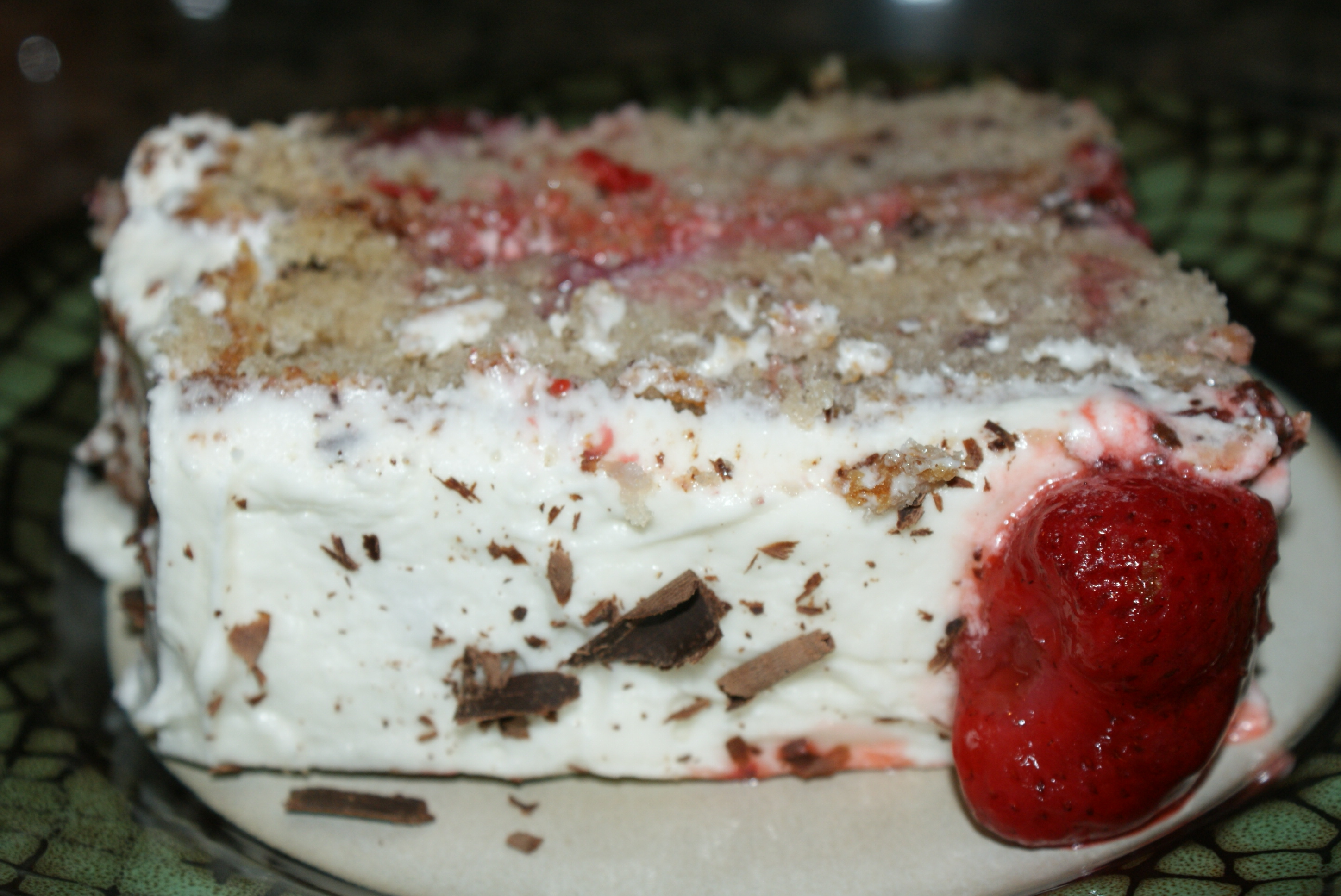 Today I was sitting in my office, eBaying of course, but all I wanted to do was bake, and I really really have been wanting cake. I’ve backed off the baking since Easter and have been just keeping up with the cooking because quite frankly, I’m getting fat again! So with the exercise cranked up a notch (I don’t think I’ve lost any weight though) and a break from baking I decided today was the day for cake. With all the tragedies and horrible things happening in our world such as the marathon bombing yesterday, life is just too short to not eat cake! Being from the northeast, a little over an hour from Boston and having walked through that area many times, my heart breaks for all the people affected yesterday. We love our Boston even though we are Southeners now:-) So back to the cake. I went through the pantry and fridge/freezer to get ideas as I had no specific craving, I just wanted cake, one of my favorite foods! I ended up making this Strawberry Chocolate chip cake and it was a good call! I’ve never made this before and I just kind of went with it as I usually do:-) I was going to frost it with Nutella frosting since I’m a Nutella freak, but my daughter came home from school before I frosted it and said “no”! She has suddenly gone on Nutella strike, so I went with the plain frosting which I still love! So here is my recipe:-)