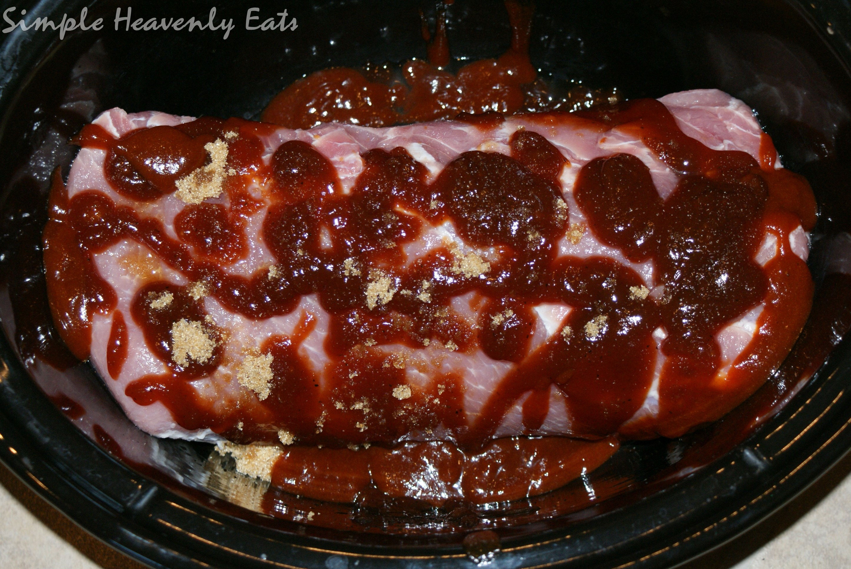 Crock pot the pork loin on low heat for 8 hours with the jar of BBQ sauce, brown sugar,  and garlic powder. You will pull/shred the pork the last 20 minutes of cooking.