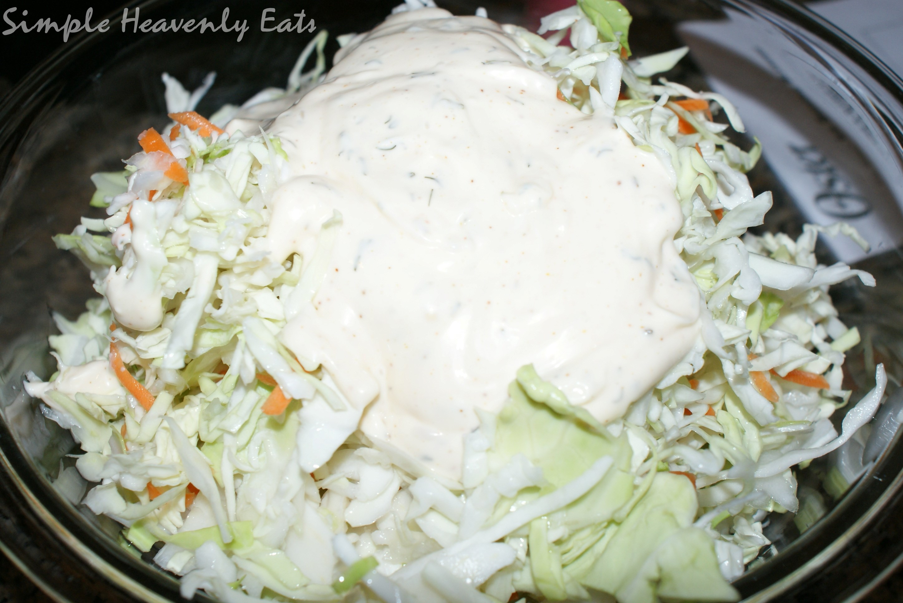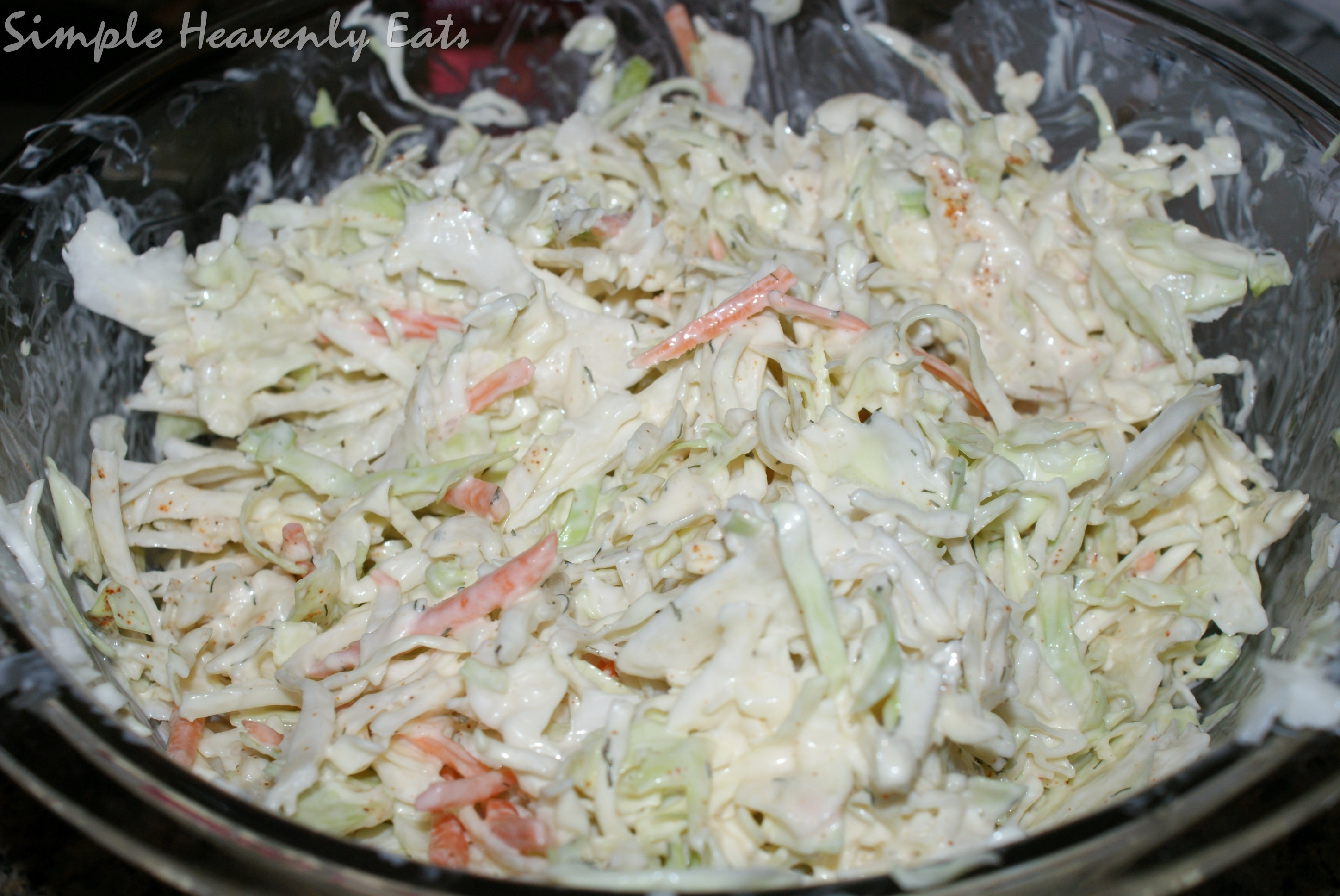 I make the cole slaw up in the morning so it can sit all day and soak up the flavors. Rinse cole slaw and place in a large bowl. In a medium size mixing bowl mix the mayonnaise, miracle whip, apple cider vinegar, ground red pepper, and dill. You can alter the amount of ingredients for your taste. When the mayo mix is ready mix it in with the slaw well, cover and refrigerate.