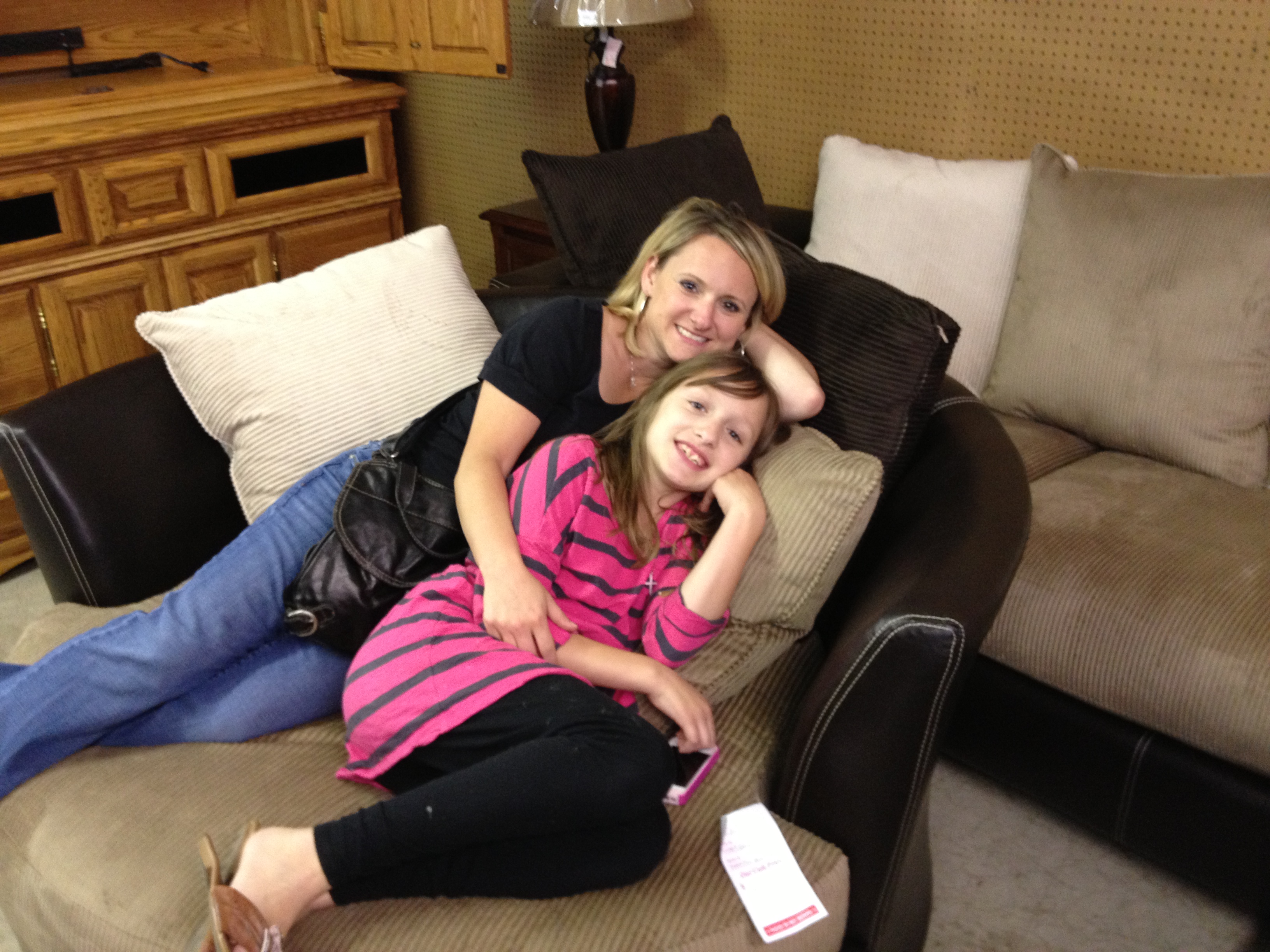I love the chair (and the couch in the background) that you and your daughter are sitting on. Sounds like a fun day.