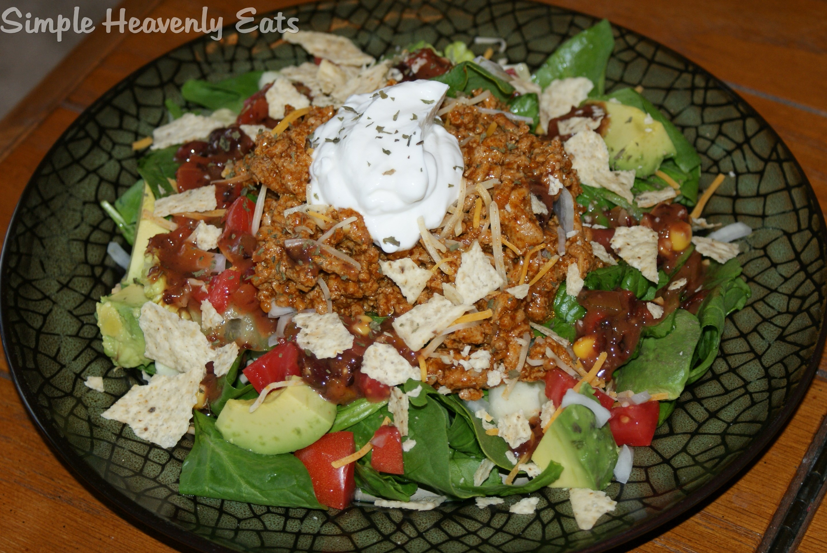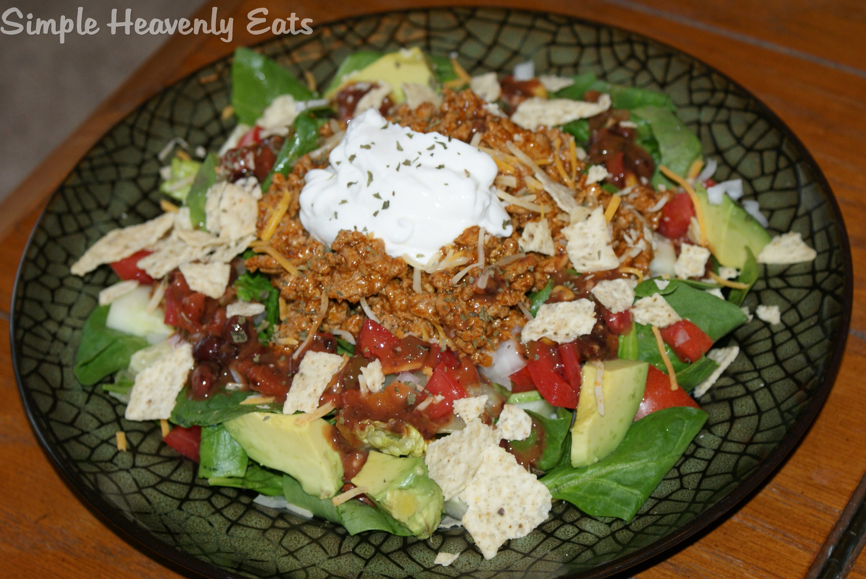 SONY DSCBefore I crash for the night I thought I would share my Taco Salad with y’all that I made for dinner tonight. It tasted every bit as good as it looked! It was just a perfect day out again today and this salad was a perfect choice on a warm sunny southern evening. I’m quite tired so I’m going to get to the point quickly and not ramble much, plus, I have to do just a small amount of reading before bed. My daughter and I several months back started reading the Harry Potter Series (I know, better late than never!) She is just starting book six and I am only halfway through book three! Having undiagnosed ADHD can be quite helpful in some situations yet challenging in others, such as sitting down to read a book or watch a movie:-) I make my family crazy at movie time because I am up down up down up down! But the love me anyways. While I was reading the second Harry Potter book I was also reading two other books. Oh boy! Anyhow, tonight my Jenni asked me what was happening at the point of the book I am at and it appears that I am mere pages away from something very exciting so I have been challenged to read tonight. I hope I can stay awake long enough to get to that so I can make her happy as she is bursting at the seams ready just blurt it out! But she’s a good girl and wouldn’t do that so she is patiently waiting! I said I wasn’t going to ramble and I just did, oops! So back to the recipe, here is my Taco Salad!