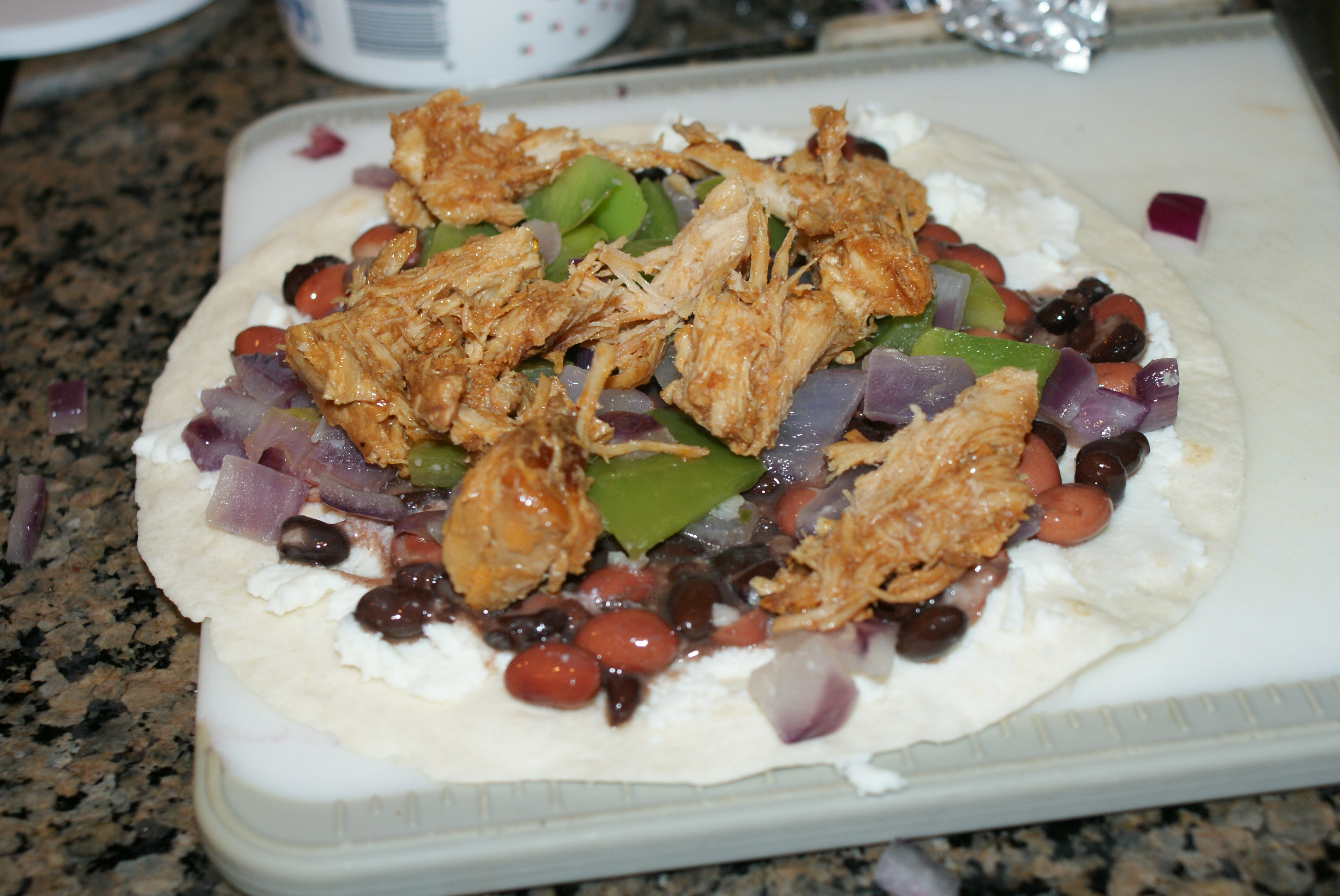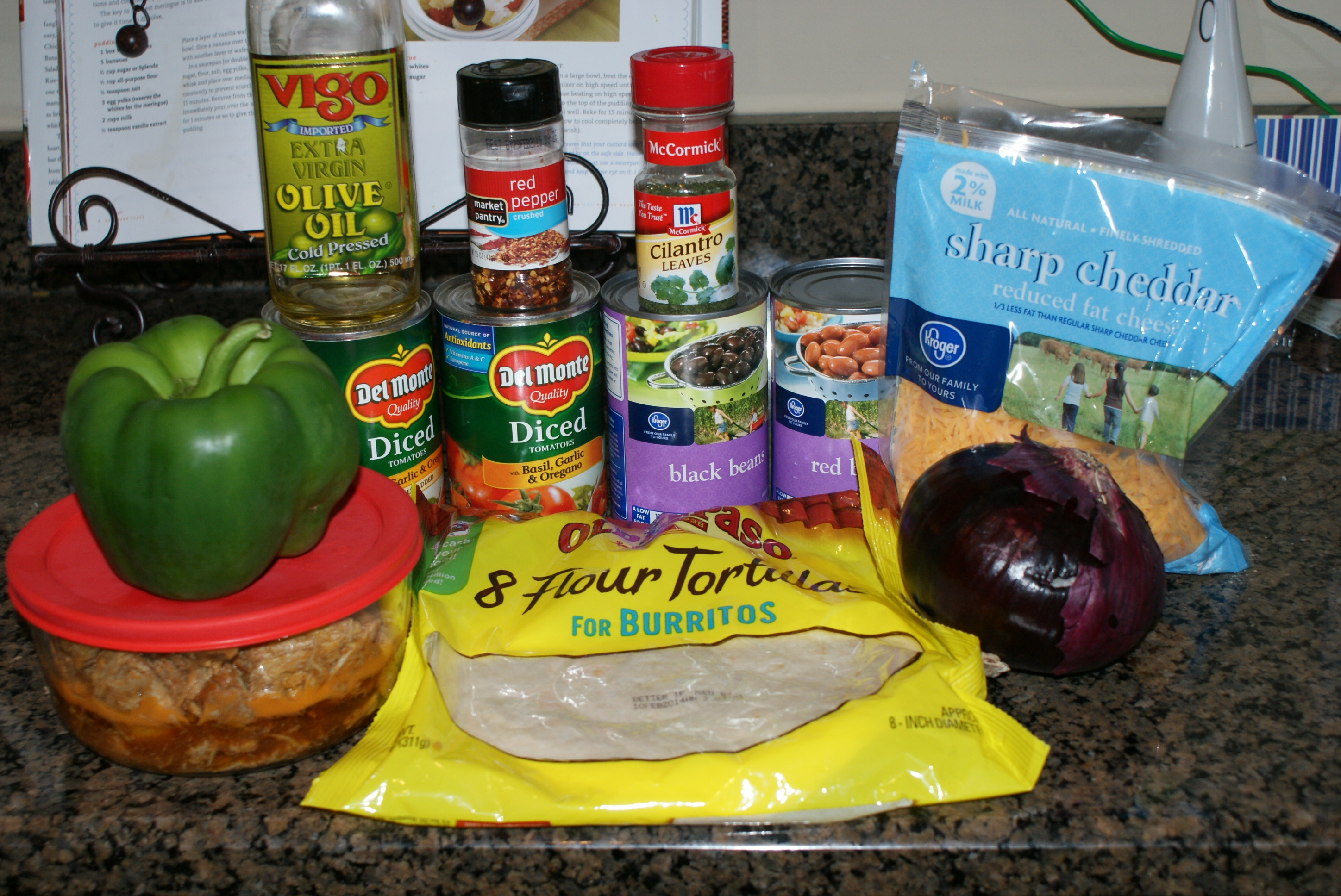 A couple nights before I had made a huge crock pot full of pulled pork. I love when Kroger puts their huge pork loins on sale, the loin I got was I believe about 5 pounds, no joke, and I think I paid maybe a little over 10 dollars. I had to slice it in half to fit it in my crock pot, and my crock pot is big. I managed to feed my whole family, plus 2 of my sons teenage friends, have leftovers for my husband to take to work on Friday and there was still a container of it sitting in my fridge come Saturday. Well, delicious pulled pork just cannot be wasted, I think it’s actually a crime in Alabama to waste barbeque (I’m kidding, but they do have some funky laws, like, you cannot have an ice cream cone in your back pocket at any time, bummer, huh!) Anyways, back to the topic, during clean out of the pantry/fridge I had all the ingredients to produce a little Mexican feast and then I laid my eyes on the pulled pork in the fridge and it all came together! Here is what happened next;-)