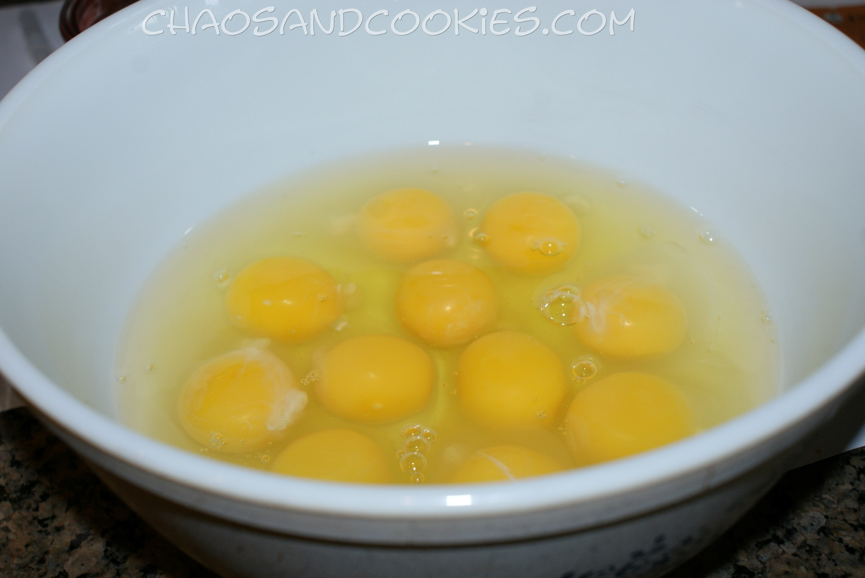 First, once you get your pan heating, add all 10 eggs to you bowl.