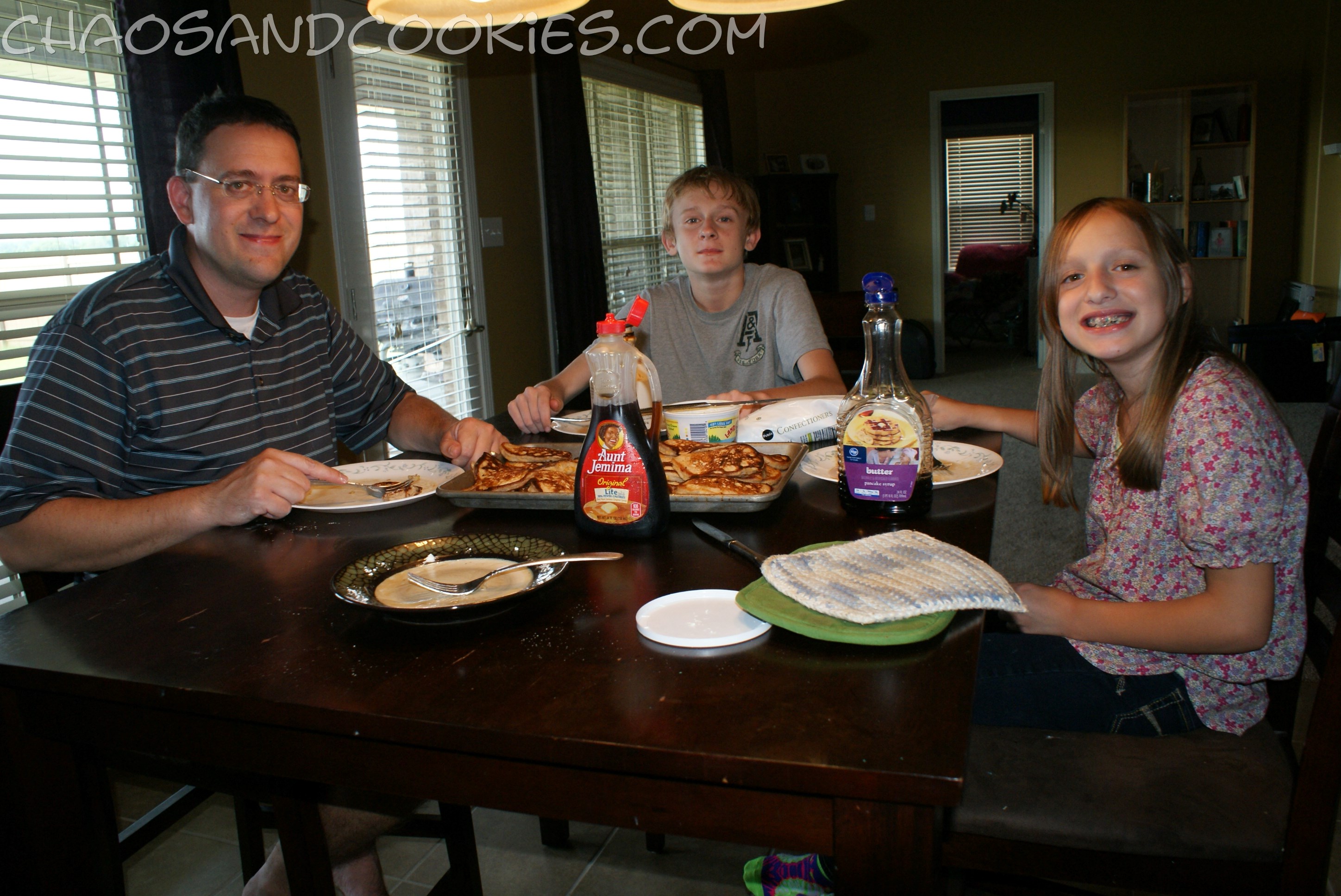 Serve these pancakes with syrup! As you can see in our photo, we sometimes cheat with our syrup. I’m really low on my VT maple syrup so I’ve been using lite bottled syrup. Real syrup is always better, but this works too. My kids prefer, sniff sniff, the bottled syrup, especially butter syrup. I can’t wait to restock my syrup supply on our next visit north!