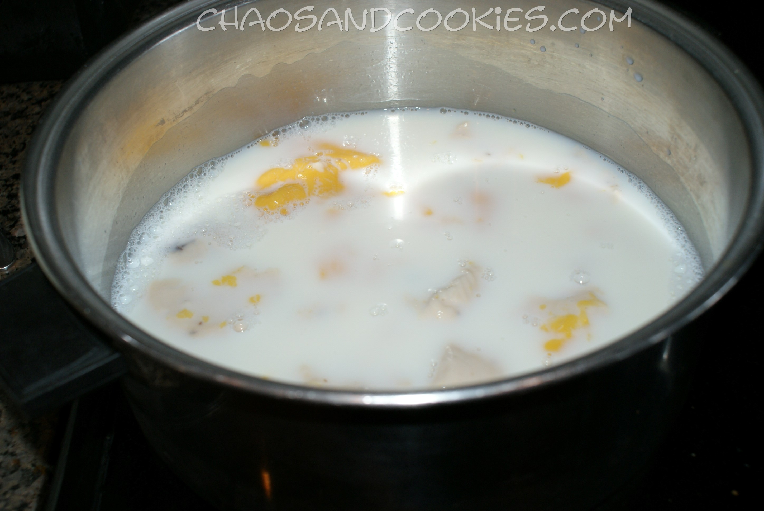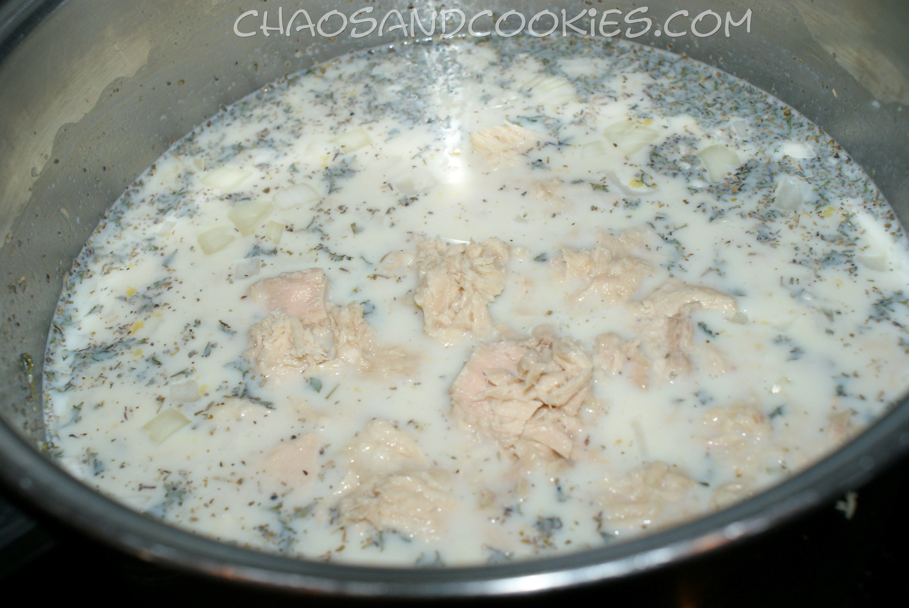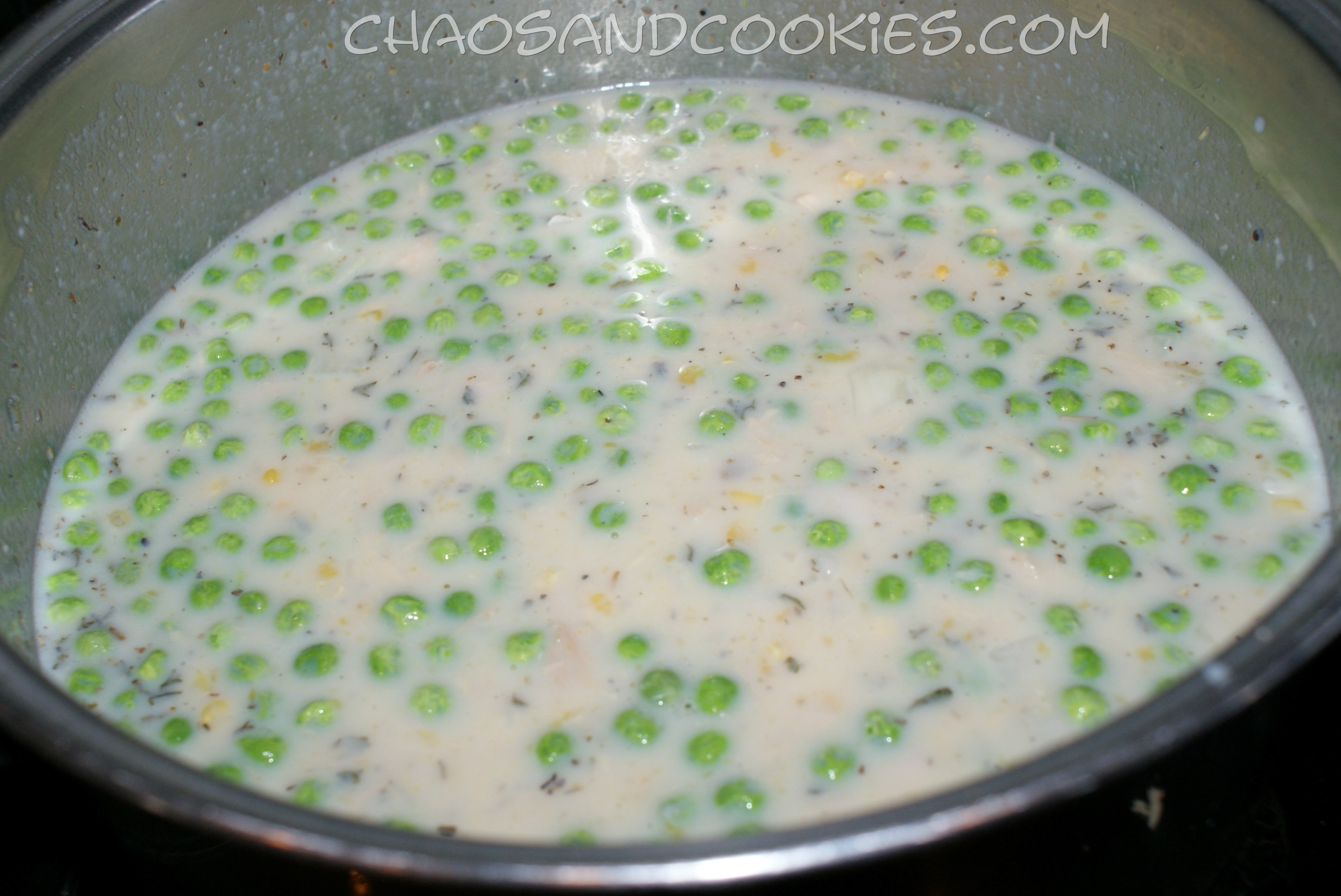 Preheat oven to 350 degrees. In a large pan boil water and make elbows as directed on package.  Drain and set aside, they finish around the same time as the sauce. In anther large pan add your cheddar and mushroom soup and milk. SONY DSCHeat on medium heat stirring often until it’s smooth and all the lumps are mixed in. When it’s smooth, add the tuna, peas, corn, rosemary, Italian seasoning, salt and pepper.