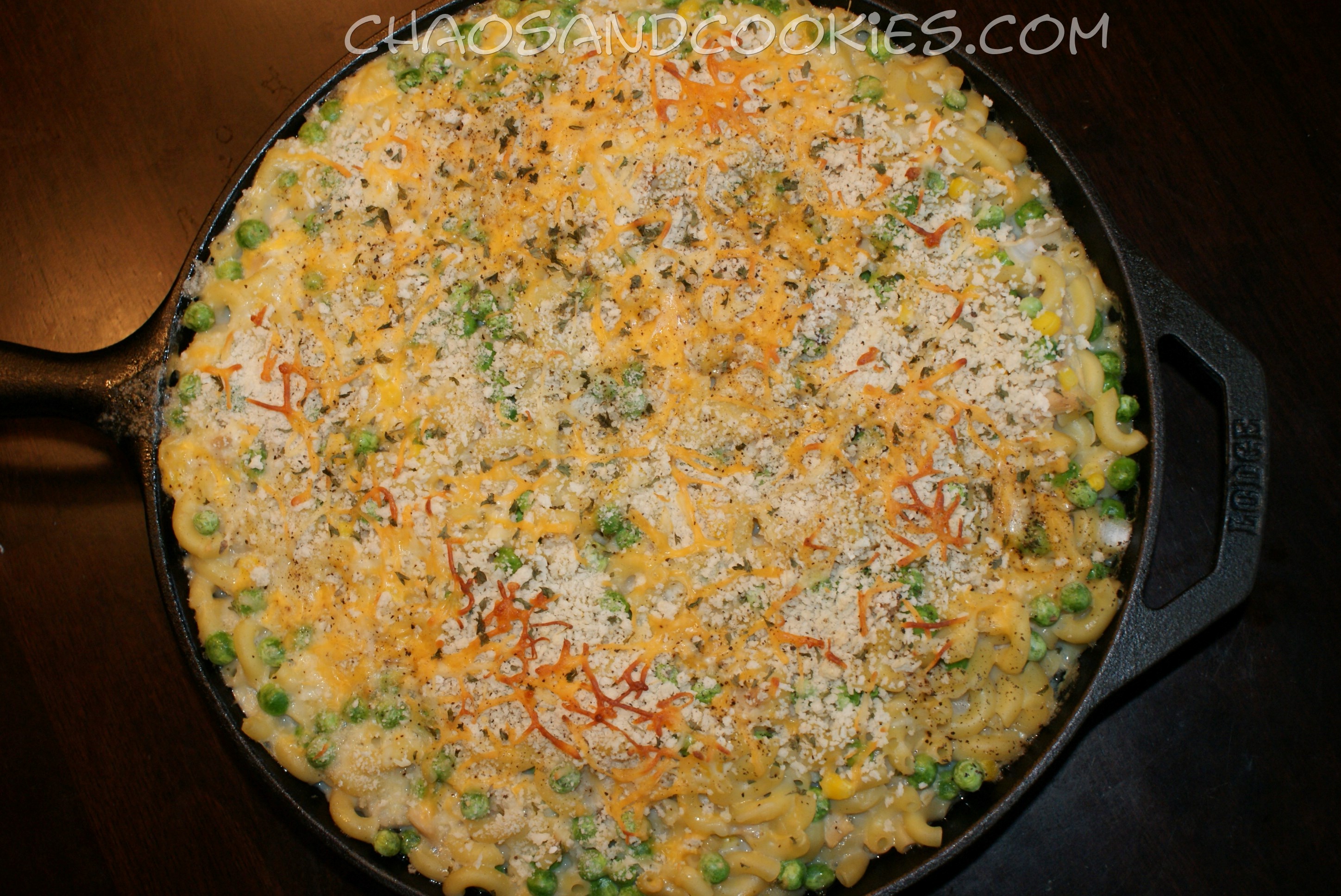 SONY DSCStir often until the veggies are heated through and the mixture is hot. Remove from heat and add the noodles to the sauce and stir together well.  Pour into your skillet, top with the panko crumbs then the cheddar cheese and bake for about 30 minutes or until the top starts browning nicely and the casserole is bubbly. Serve and enjoy!SONY DSC SONY DSC SONY DSC SONY DSC