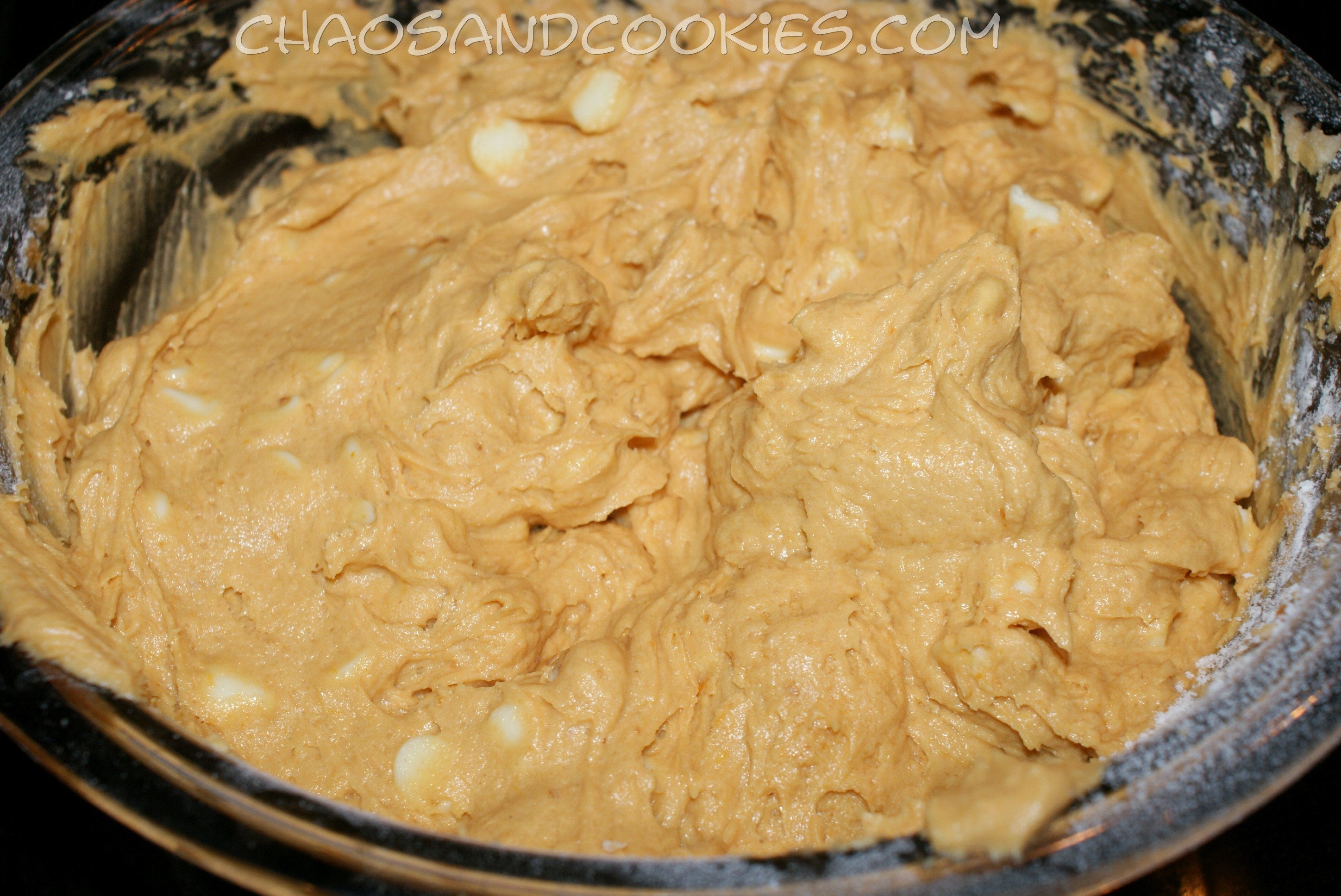 Here is the recipe for my Pumpkin White Chocolate Chip Cakie:-) I mostly follow the directions on the Nestle White Morsels package, but I do omit and add a few items.