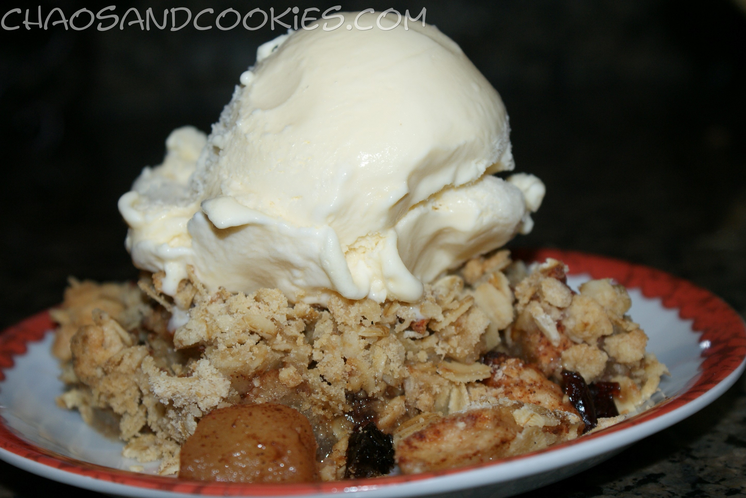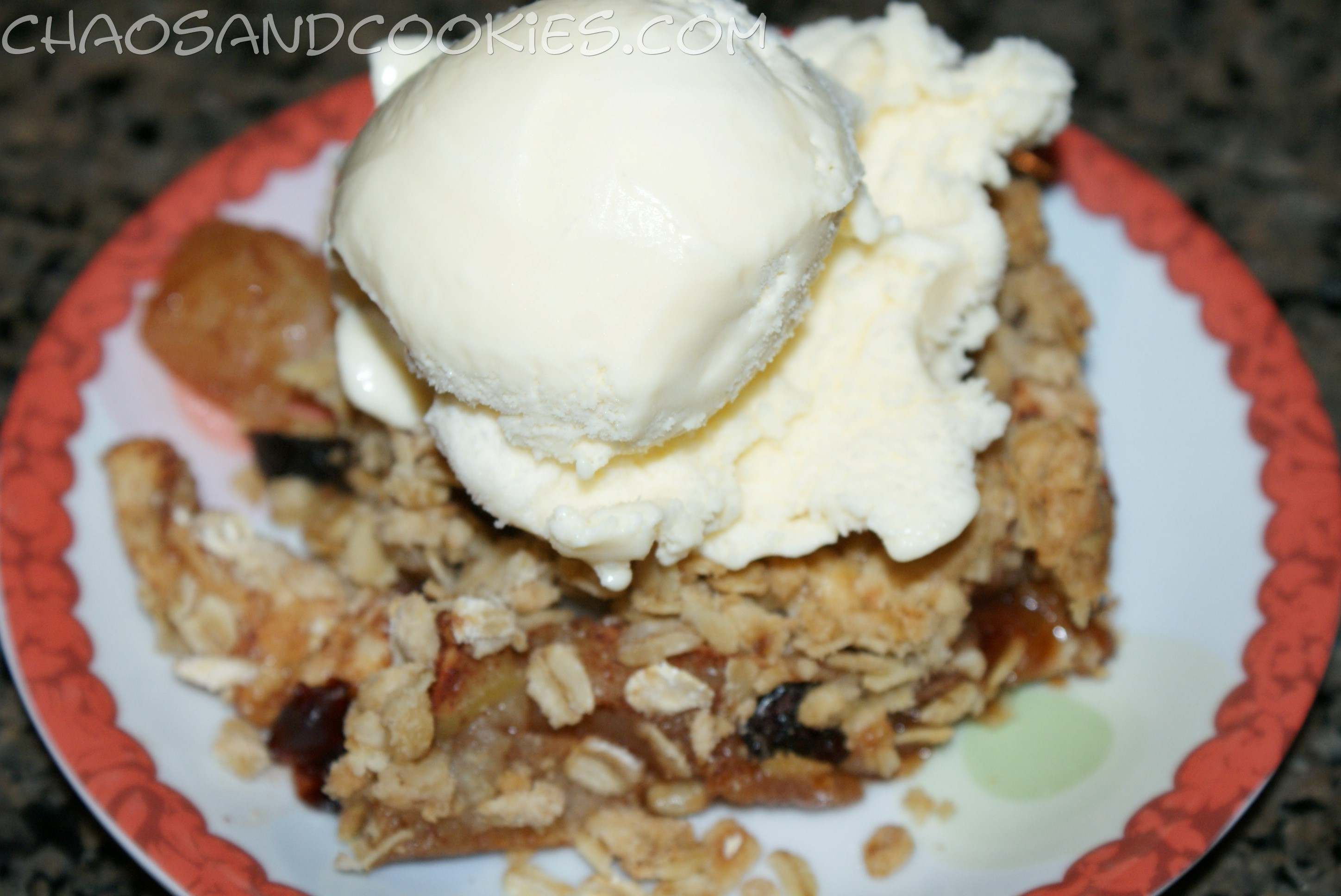 Bake at 350 degrees for about 50 minutes or until cooked well and browned on top. Serve warm with a scoop of vanilla ice cream on top! It’s just fine on its own if you want to skip the ice cream!
