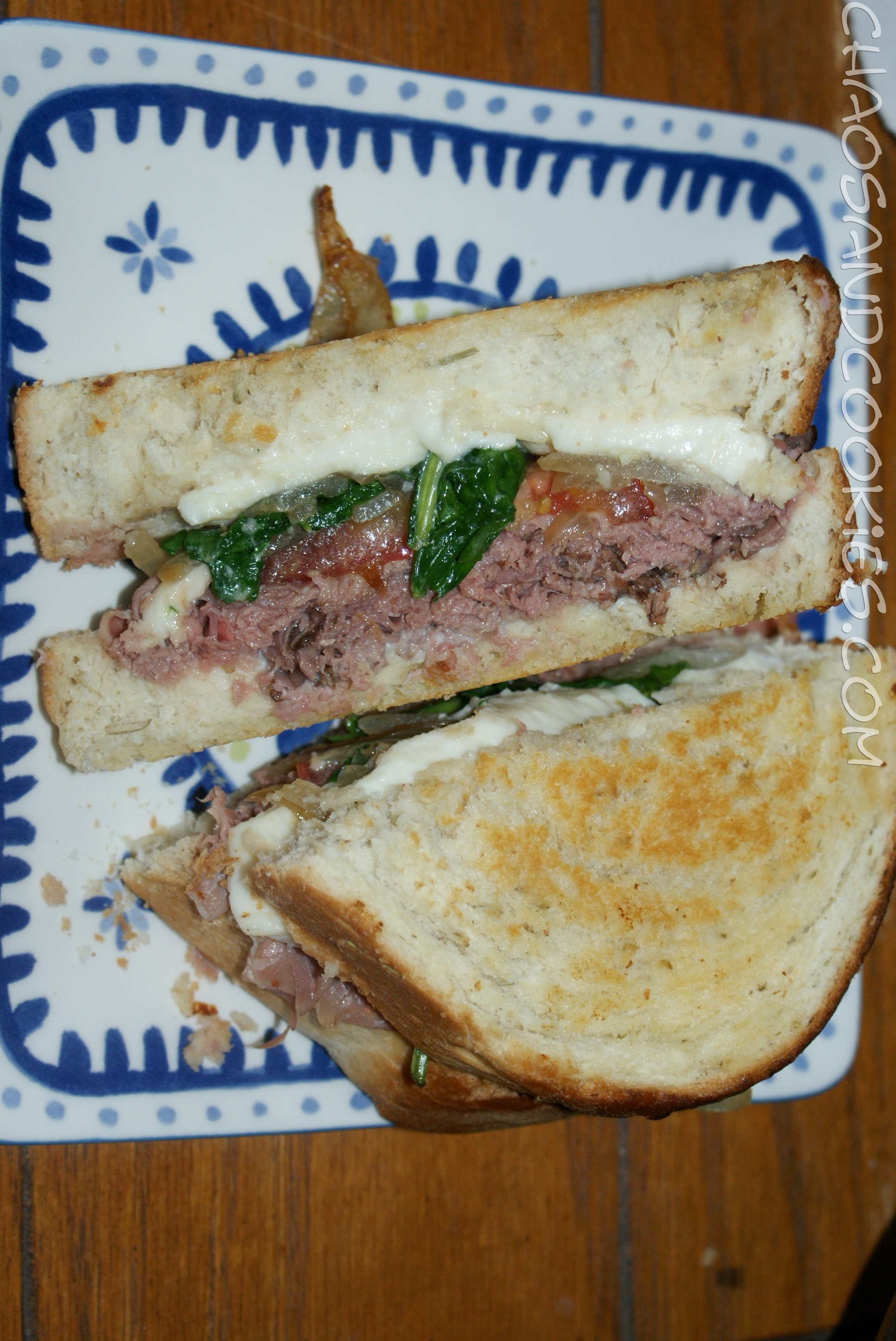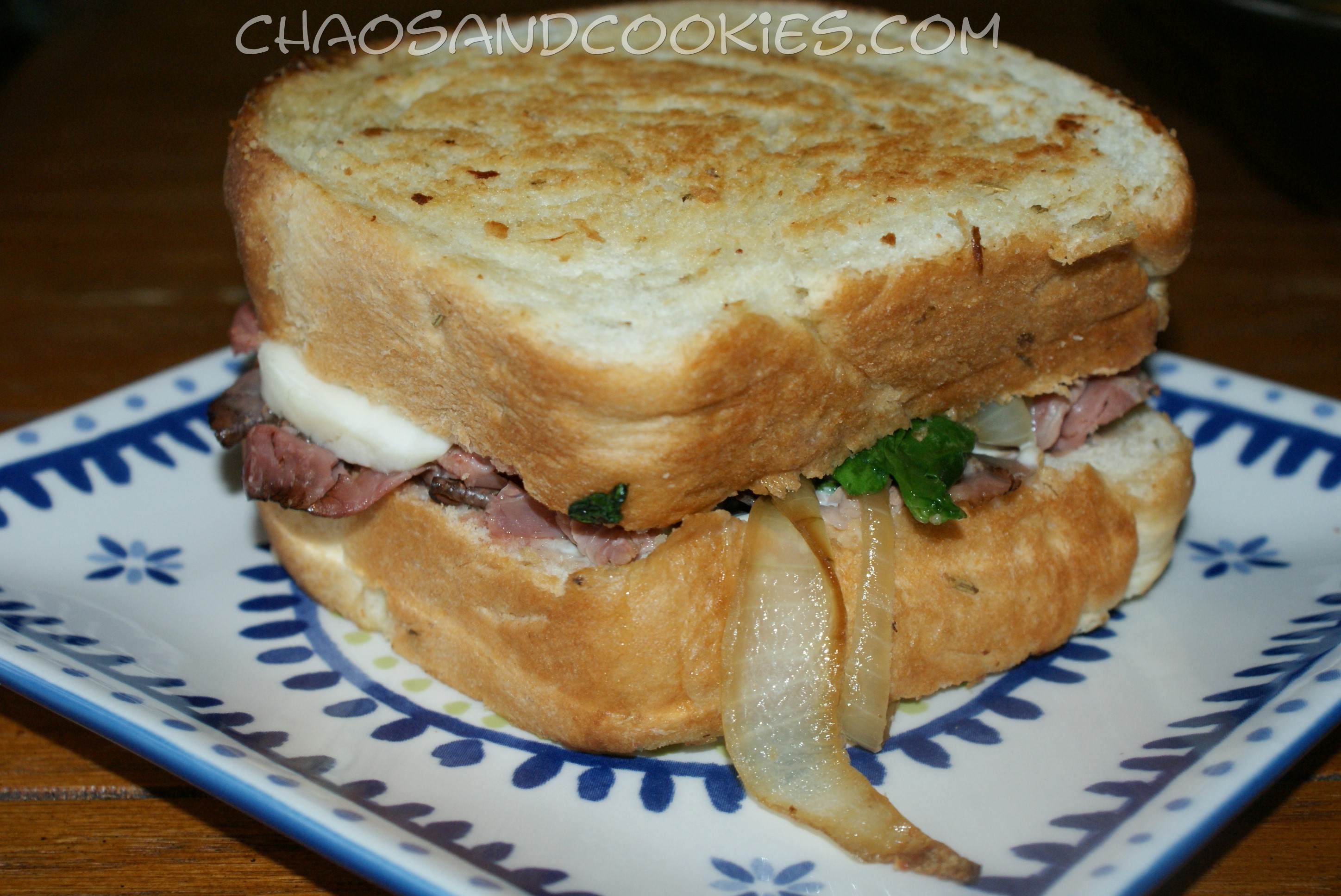 “The Beast” Grilled Roast Beef and Mozzarella Sandwich on Homemade Bread