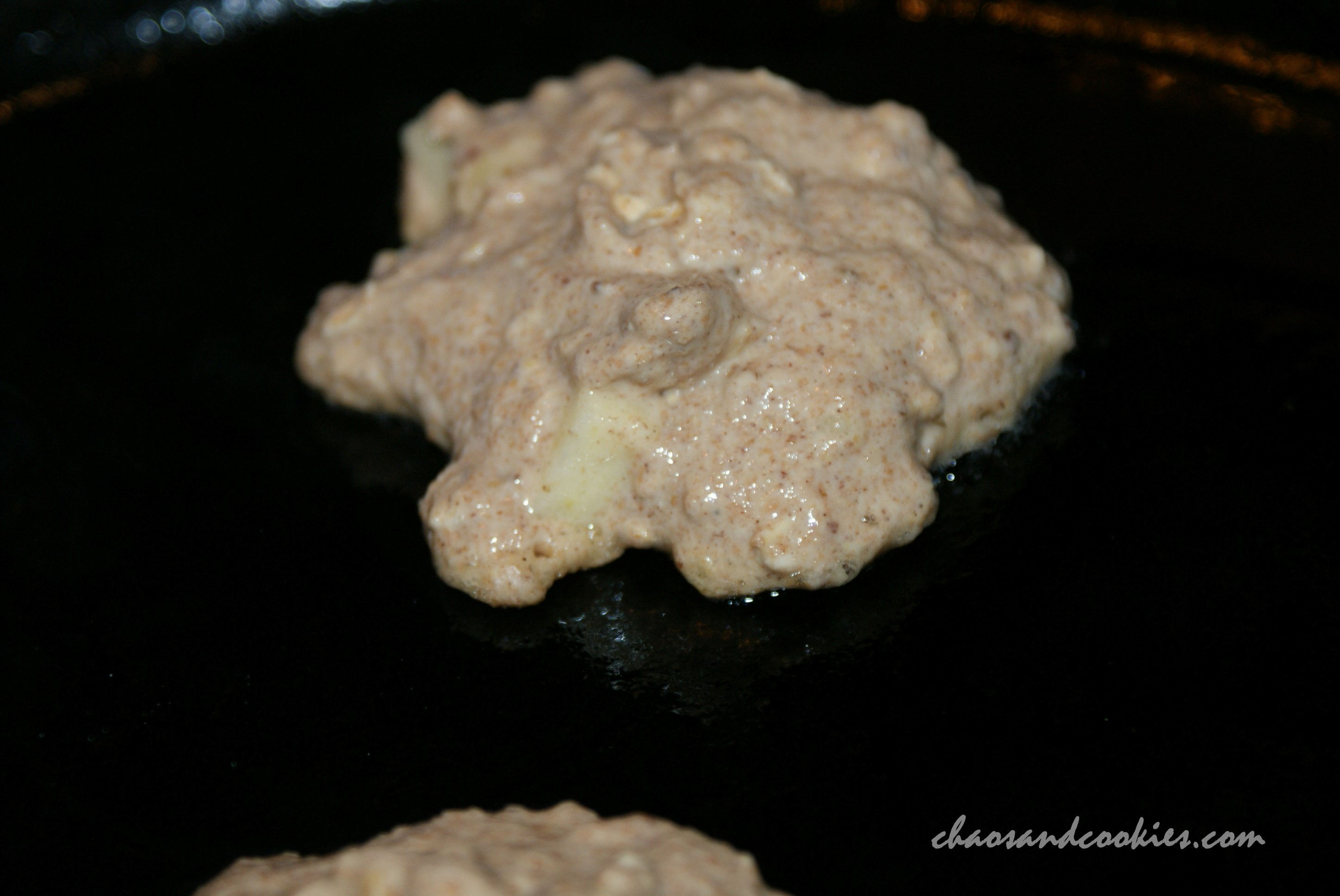 Heat your skillet on medium heat with the coconut oil it. I used my cast iron so if you used cast iron you will want to monitor the heat well once you start cooking the pancakes so you don’t burn them. You may need to turn it down to medium low after a bit but not until you start the cooking process.