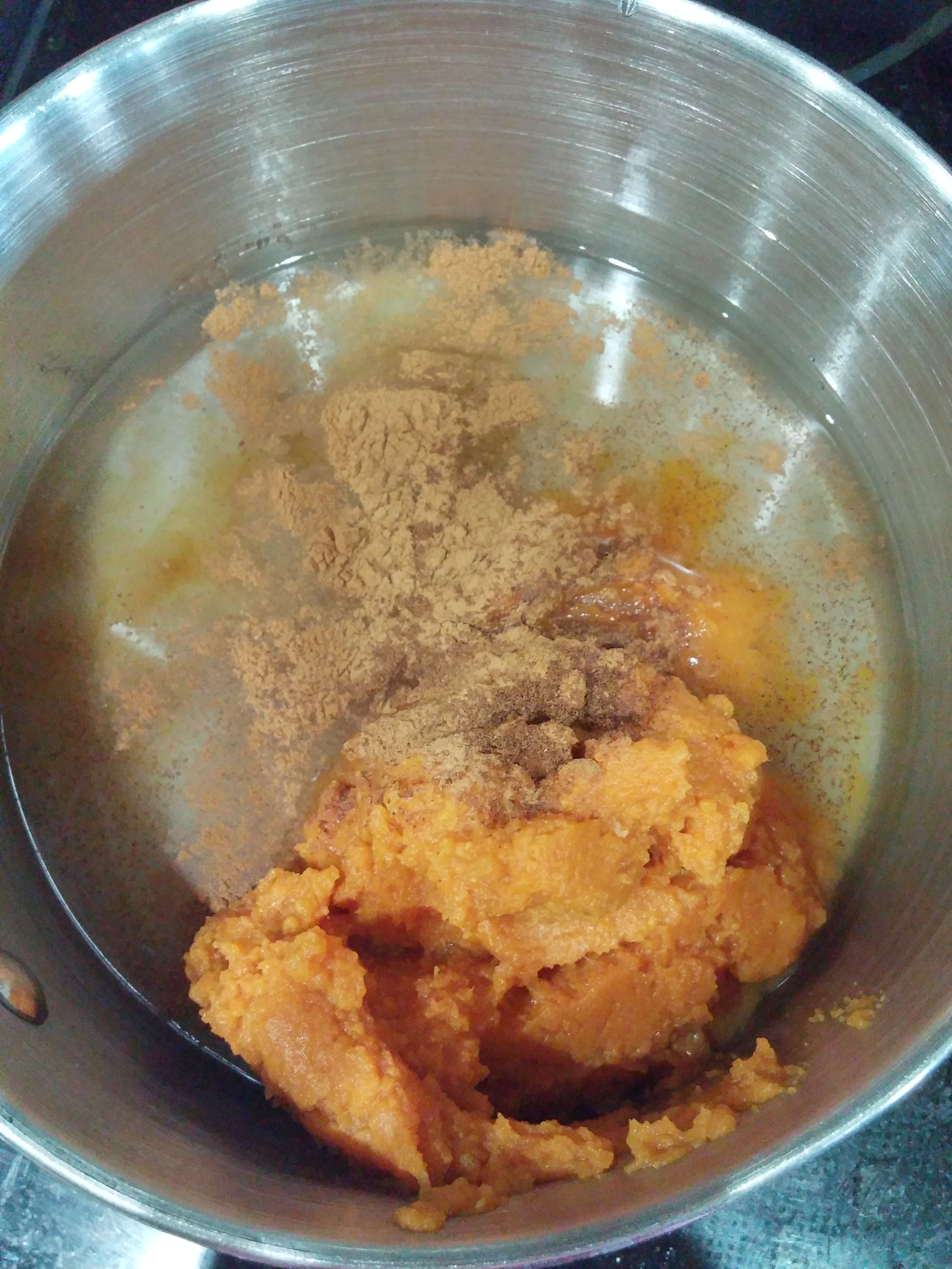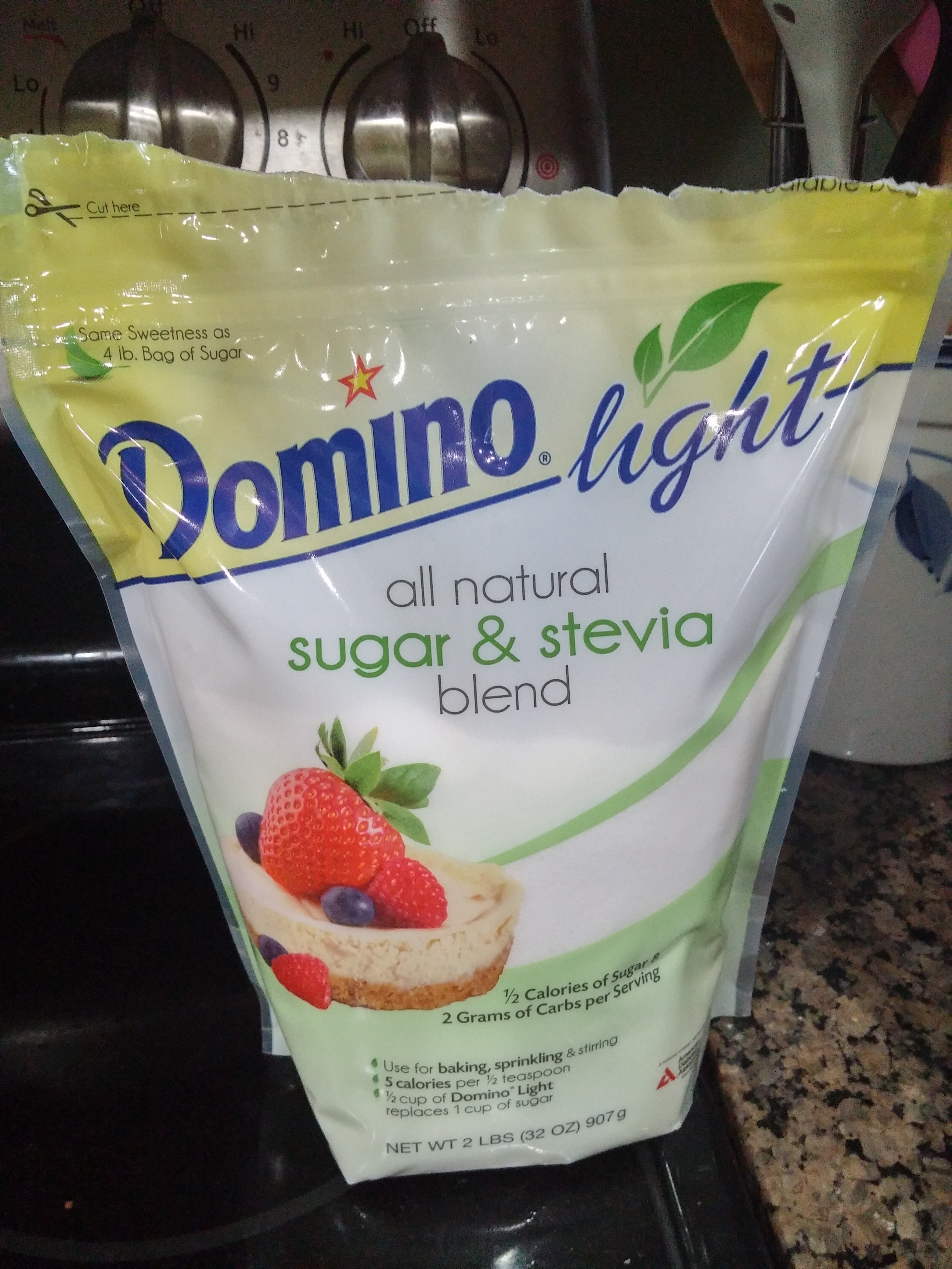 So this morning I decided that I was going to make my own pumpkin sauce and make it a lighter version with less sugar and less calories. I recently bought a bag of Domino’s sugar/stevia mix that I have been wanting to try so my pumpkin sauce was made with that! Here is what the bag looks like!